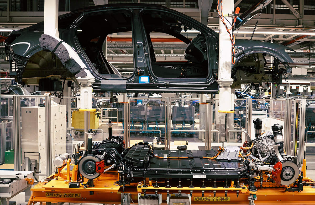 Una vez completado el proceso de fabricación, el módulo de la batería se monta en la base de la plataforma eléctrica junto a los motores, suspensiones, frenos y el resto de los componentes mecánicos que equipa el imponente SUV con hasta 408 CV de potencia.