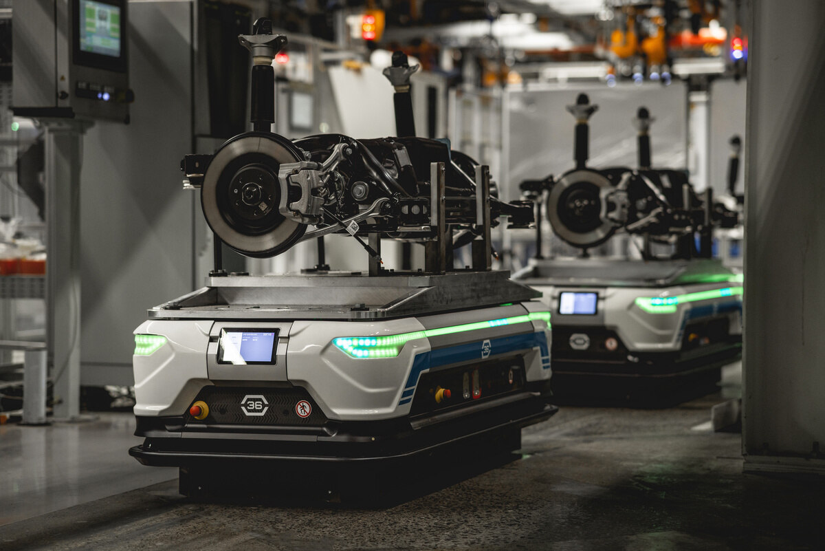 La compleja fabricación de las baterías, de 95 y 115 kWh, a partir de los componentes suministrados por un proveedor externo, requiere cinco líneas de montaje, a través de las cuales se combina el trabajo manual de los operarios con la intervención de sofisticados robots que garantizan la seguridad y la extrema precisión que requieren algunas fases de este proceso tan complejo.