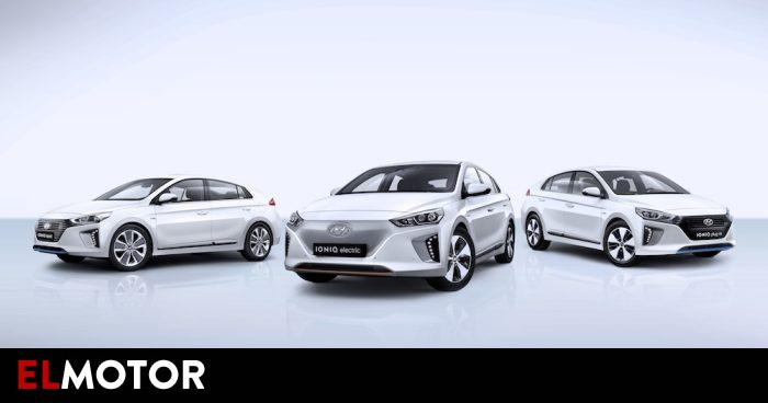 • IONIQ plug-in o híbrido enchufable. Llegará a mediados de 2017. Similar al anterior, aunque permite recargar el motor eléctrico desde una fuente de alimentación externa.