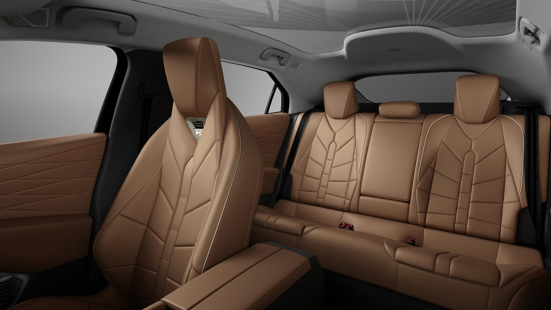 La comodidad en viaje empieza por los propios asientos, con diseño entre deportivo y ergonómico. Las plazas delanteras incluyen funciones exclusivas como calentador de cuello, además de estar calefactadas y ventiladas e incorporar función de masaje.