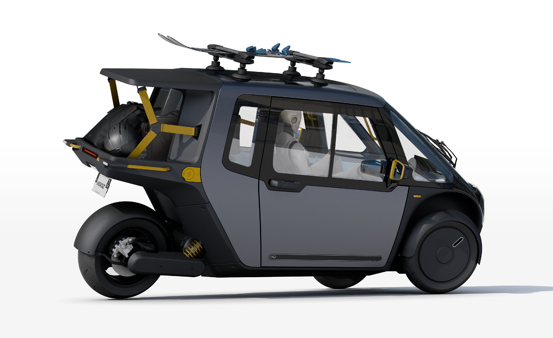 En cuanto al diseño, la cabina cerrada sorprende por su comodidad y seguridad: climatización, cinturones de tres puntos, estructura con absorción de impactos y un sistema de inclinación activa que facilita la estabilidad en curvas. Con 1,65 metros de altura, el Vigoz es compacto para aparcar, pero lo bastante visible en carretera. Dispone de espacio para un acompañante, una mascota o algo de carga ligera, aunque el maletero trasero es abierto.