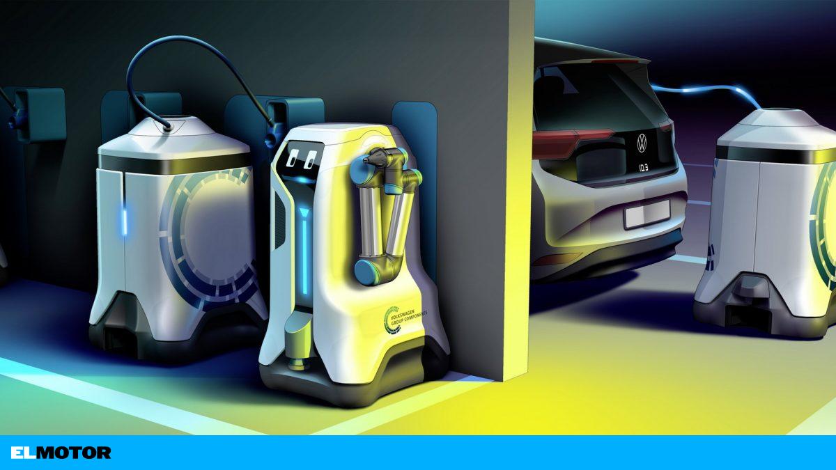 El coche eléctrico estará estacionado y el cargador, por sí solo, irá hacia él a cargarlo. Para solventar los problemas de infraestructura de recarga, Volkswagen ha presentado una alternativa que puede solucionar la cuestión en grandes aparcamientos. Se trata de una suerte de ‘robot mayordomo’ que se encarga de llevar puestos de carga portátiles hasta los vehículos a pilas.