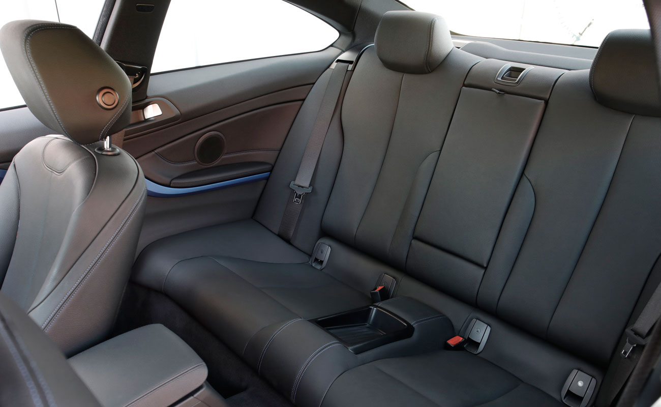 BMW Serie 4 Coupé. Las mejores plazas traseras y un buen confort. El Serie 4 resuelve las habituales carencias de espacio de otros BMW y ofrece las mejores plazas traseras, tanto por facilidad de acceso como en altura, anchura y espacio para las piernas. Por dentro mantiene el diseño de siempre, pero tiene un maletero muy similar al del Audi y una suspensión cómoda para viajar.