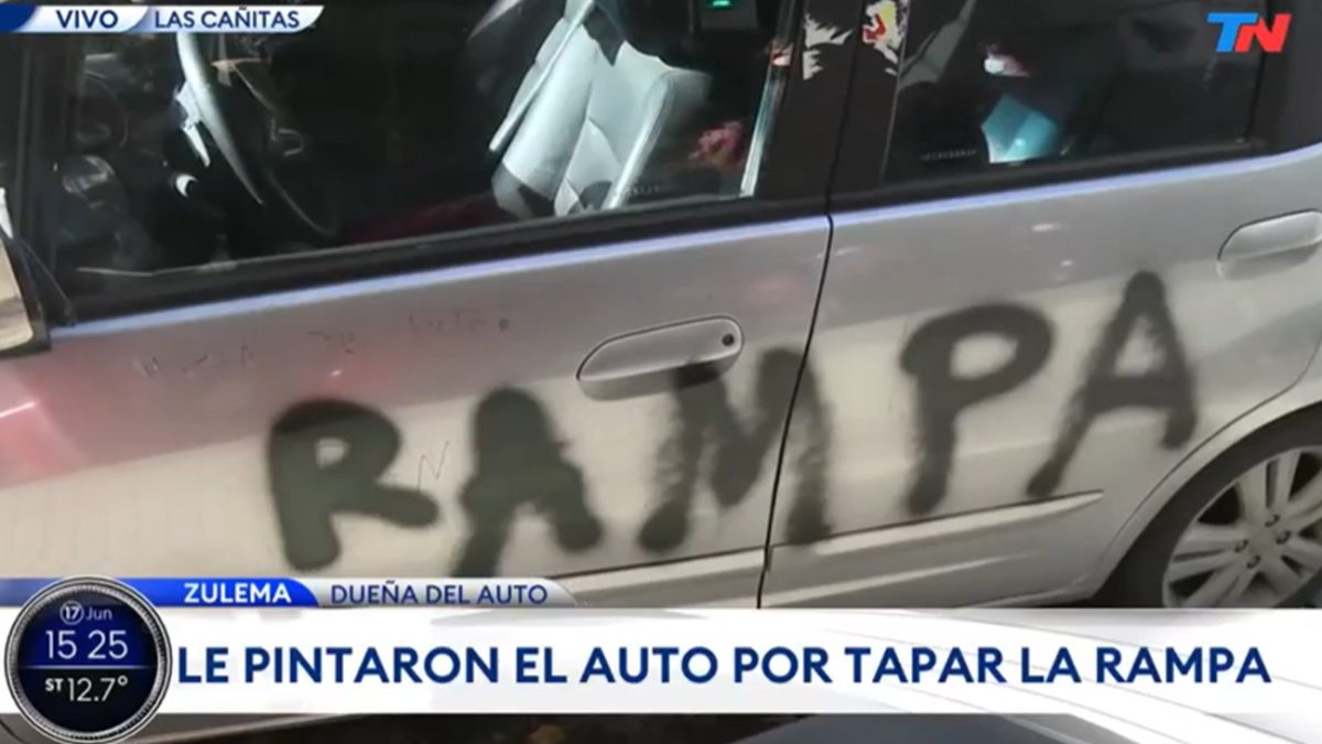 Si bien el post es reciente, la imagen corresponde a un automóvil aparcado en Buenos Aires, Argentina, hace tres años. La dueña del automóvil no olvidará jamás la lección, pues tal como se aprecia en la imagen, cuando volvió encontró su coche con un mensaje escrito en las puertas (al parecer con aerosol): ‘RAMPA’ y otros improperios escritos en la carrocería.