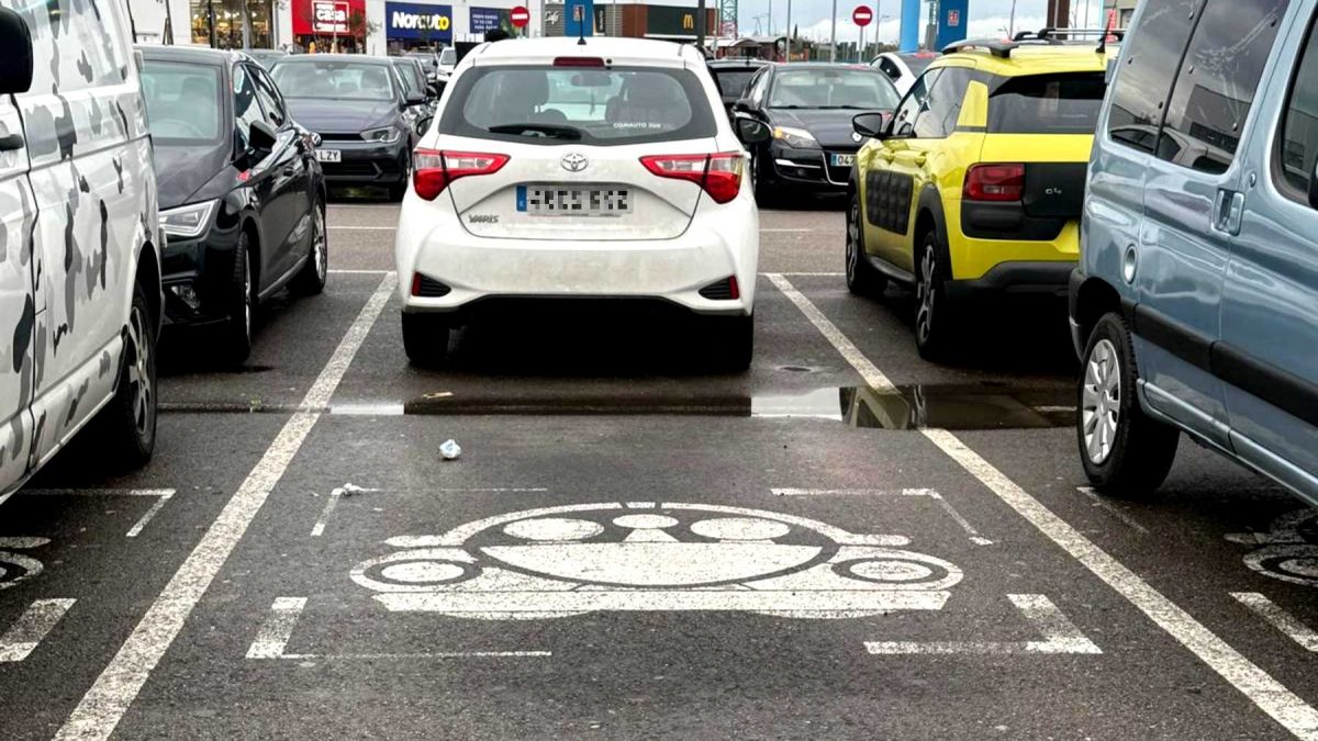 En los últimos meses, una señalización peculiar está apareciendo en los aparcamientos de numerosos centros comerciales. En el suelo, la pintura muestra un coche visto de frente y, en su interior, varias figuras redondeadas que representan pasajeros.