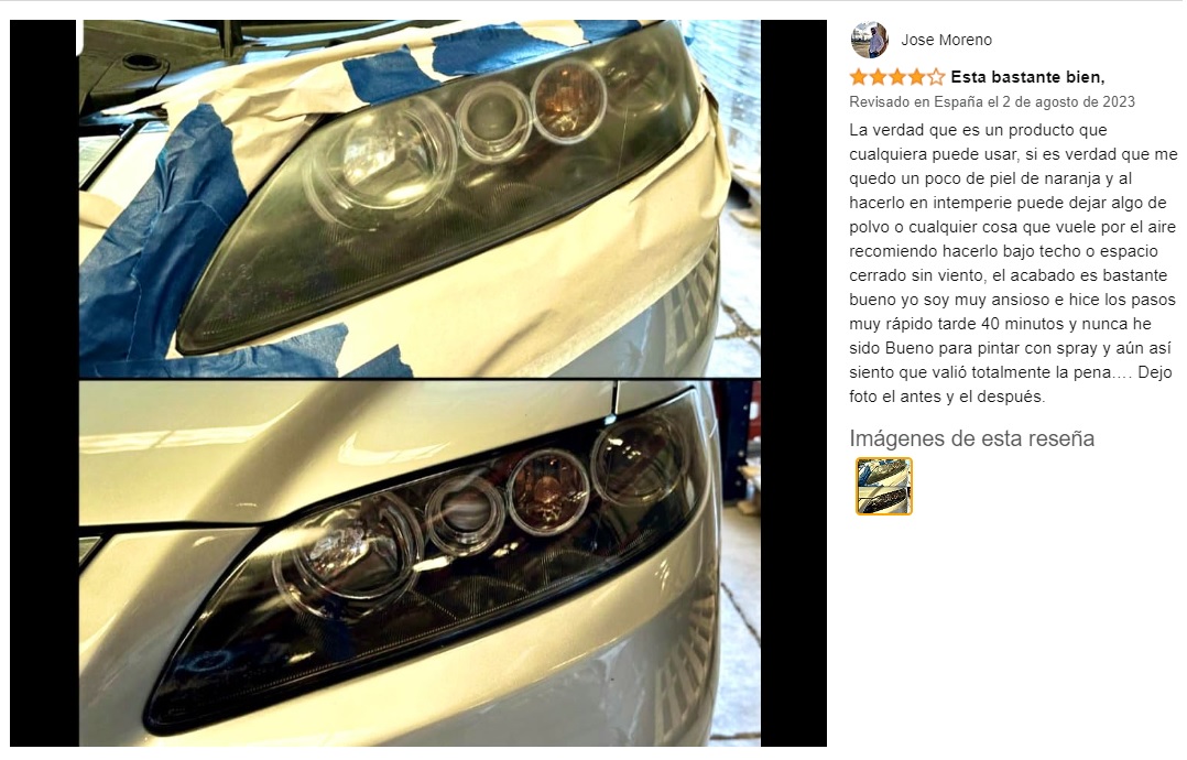 Este espray tiene 4,4 valoraciones (de 5) y cuesta menos de 16 euros. Se trata de un aerosol de secado rápido (400 ml) que sirve para abrillantar los faros del coche. Eso sí, previamente hay que pulirlos.
