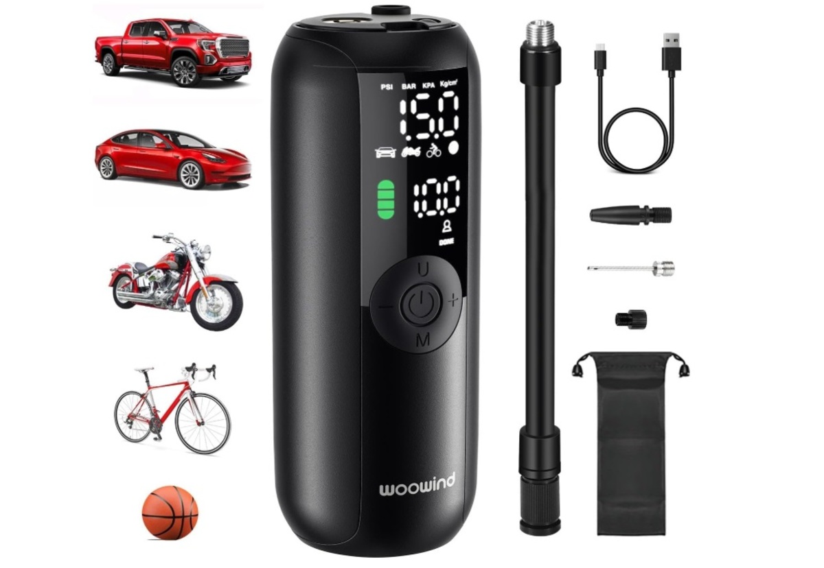 Hay otra opción más económica: este minicompresor eléctrico cuesta 21,58 euros utiliza el exclusivo movimiento turboalimentado, que es más potente y más estable. Como referencia, es capaz de inflar un neumático de tamaño medio (195 / 65 / R15) en cinco minutos, lo que hace que hinchar los neumáticos en una emergencia sea rápido y fácil.