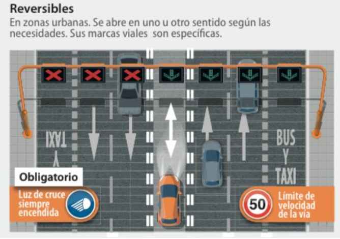 - Distancia de seguridad. Por lo general, los carriles reversibles suelen contar con un alto nivel de ocupación, por lo que es imprescindible respetar la distancia de seguridad: un frenazo y un golpe pueden generar un atasco de difícil resolución en esas circunstancias.