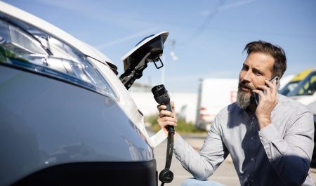 Un conductor intenta cargar su coche eléctrico.