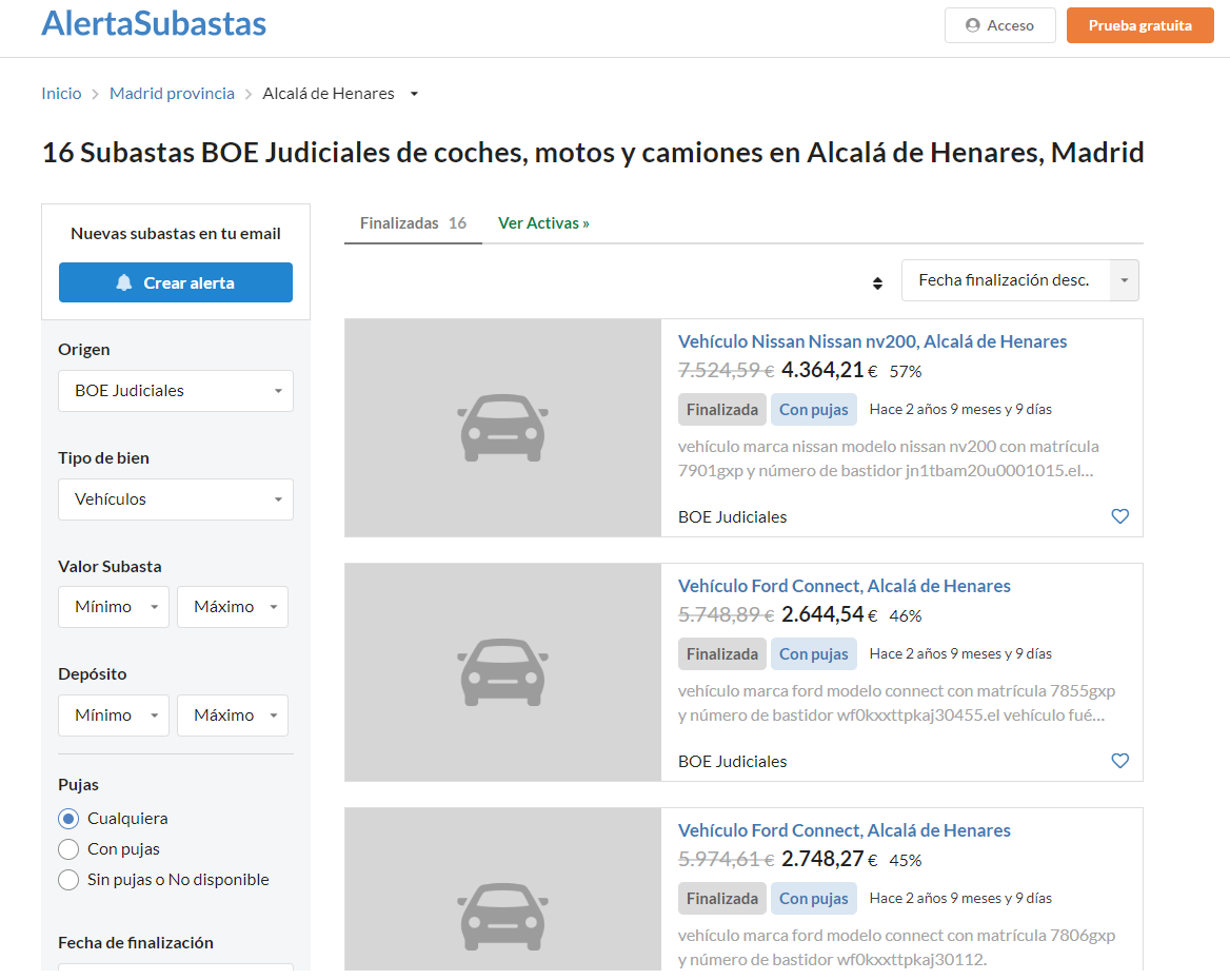 En el portal del Boletín Oficial del Estado se venden coches seminuevos, usados y medio usados con precios de salida a veces muy económicos.