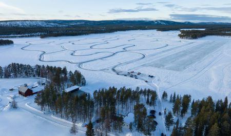 Con las temperaturas bajo cero en esta zona, los cientos de lagos de la zona se hielan y permiten crear circuitos de hielo y nieve en su superficie. Con 10 centímetros de espesor, el hielo ya es capaz de soportar el peso de un coche sin romperse.