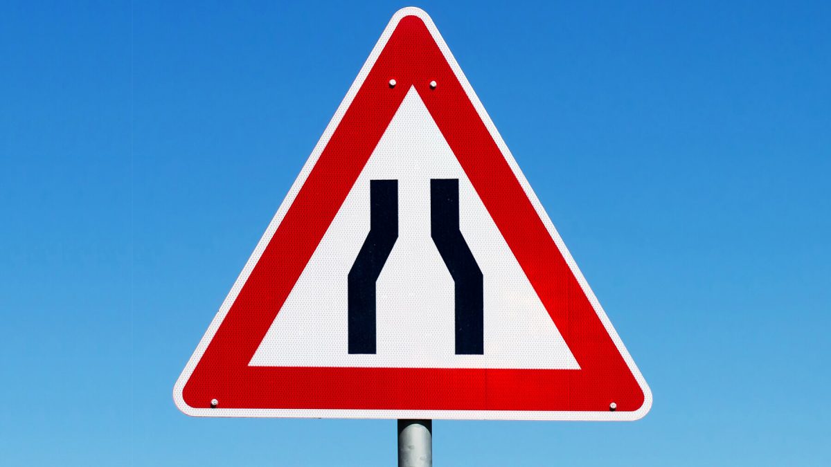 Al encontrarse con una señal de estrechamiento en la vía, es recomendable que el conductor siga estas directrices:
