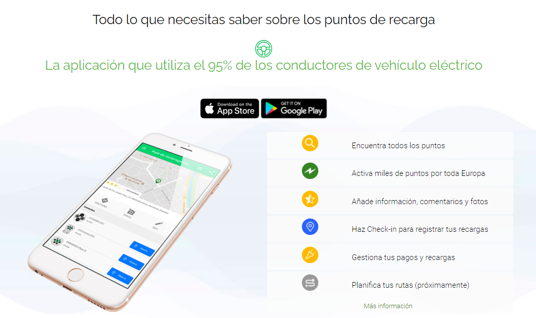 • Google Maps. La aplicación de mapas de Google ofrece la localización de los puntos de carga. Para encontrar las estaciones, basta introducir las palabras clave, “puntos de recarga para vehículos eléctricos”, y los cargadores saldrán ubicados en el mapa. También permite medir la distancia entre dos puntos.