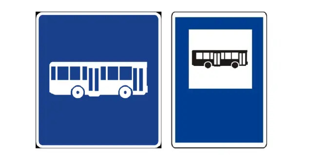 Las señales de tráfico rectangulares con fondo azul y el pictograma de un autobús informan a los conductores sobre ciertas particularidades reservadas a este tipo de vehículos.