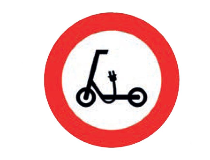 R-118. Entrada prohibida a vehículos de personal. Prohibición de acceso a vehículos de movilidad personal (VMP). Esta nueva señal afecta a todos los VMP, no solo a los patinetes.