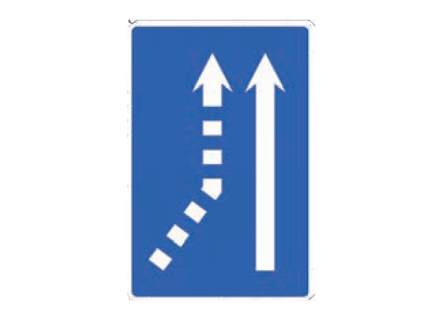 S-70. Confluencia de un carril. Indica, en una calzada con un carril (S-70), dos (S-71) o más carriles (S-72) de circulación, que se producirá la confluencia de uno o más carriles por el lado izquierdo o derecho.