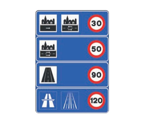 También hay nuevas placas que responden a las necesidades de los peatones y los usuarios de bicicletas, y algunas dan cabida a las nuevas formas de moverse. Ocurre con la diseñada para avisar de la proximidad de una estación de servicio, que incluye el anuncio de un puesto recarga eléctrica; otra, pensada para las ciudades, informa de la cercanía de una zona de bajas emisiones (ZBE).