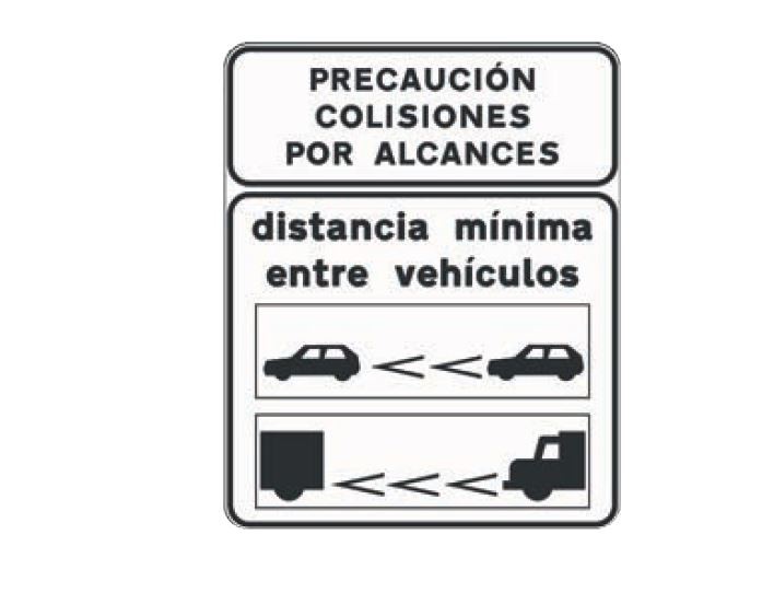 S-992. Señal informativa de la distancia mínima entre vehículos. Indica el número de marcas viales de galón que debe dejar un vehículo entre él y el que le precede.