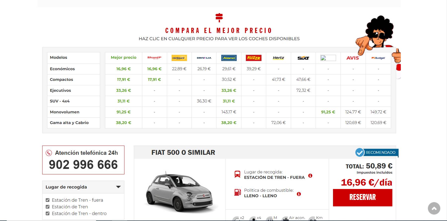 Lo que nació hace años como una empresa de alquiler de coches baratos con bases en diferentes ciudades de España, se ha convertido en un comparador que identifica las opciones de las compañías más importantes del mercado. Entre sus filtros se encuentran la política de combustible o el tipo de kilometraje.