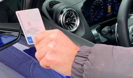 Un conductor mostrando su carnet de conducir.