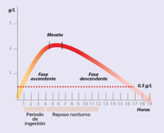 “Una persona con un nivel de alcoholemia de 1 g/l puede necesitar entre seis y 10 horas para que su nivel de alcoholemia baje del nivel máximo permitido. Aún por debajo del límite legal, el riesgo de accidente puede verse ya incrementado. Por ello, lo mejor es evitar conducir después de haber consumido cualquier cantidad de alcohol. La única tasa realmente segura es 0,0 g/l”, señala la DGT.