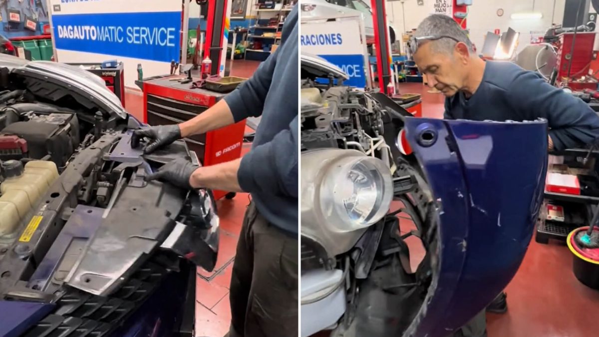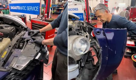 La respuesta ya deja intuir que esta operación no es sencilla: “¿Un Nissan Juke? ¿En un ratín? Pero ¿está de broma?”. Hija y padre muestran que para cambiar las bombillas de los faros del SUV japonés hay que dar muchos pasos: soltar todos los remaches para desmontar la rejilla delantera, los embellecedores del paso de ruedas, los tornillos laterales del paragolpes, los tornillos inferiores, los anclajes de un lado y de otro, etc.