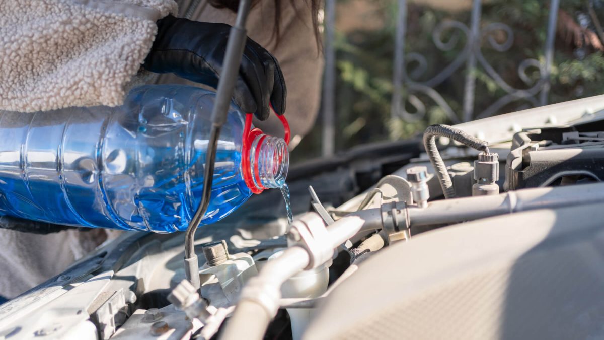 Una conductora rellenando el depósito del líquido limpiaparabrisas. | Getty
