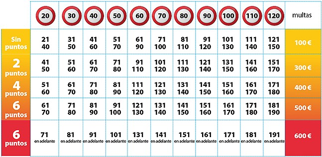 Los excesos de velocidad se sancionan con multas de 100 a 600 euros  y con la retirada de hasta seis puntos del carnet. Eso sí, en cada radar se aplican unos márgenes de error para que las sanciones emitidas sean lo más ajustadas posible a la realidad: