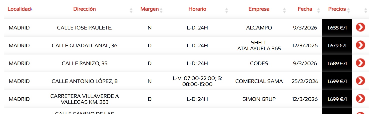 Entre ellas, la web dieselogasolina.com ofrece listados actualizados con los precios de los combustibles. En esta página es posible buscar las estaciones por localidad o provincia.