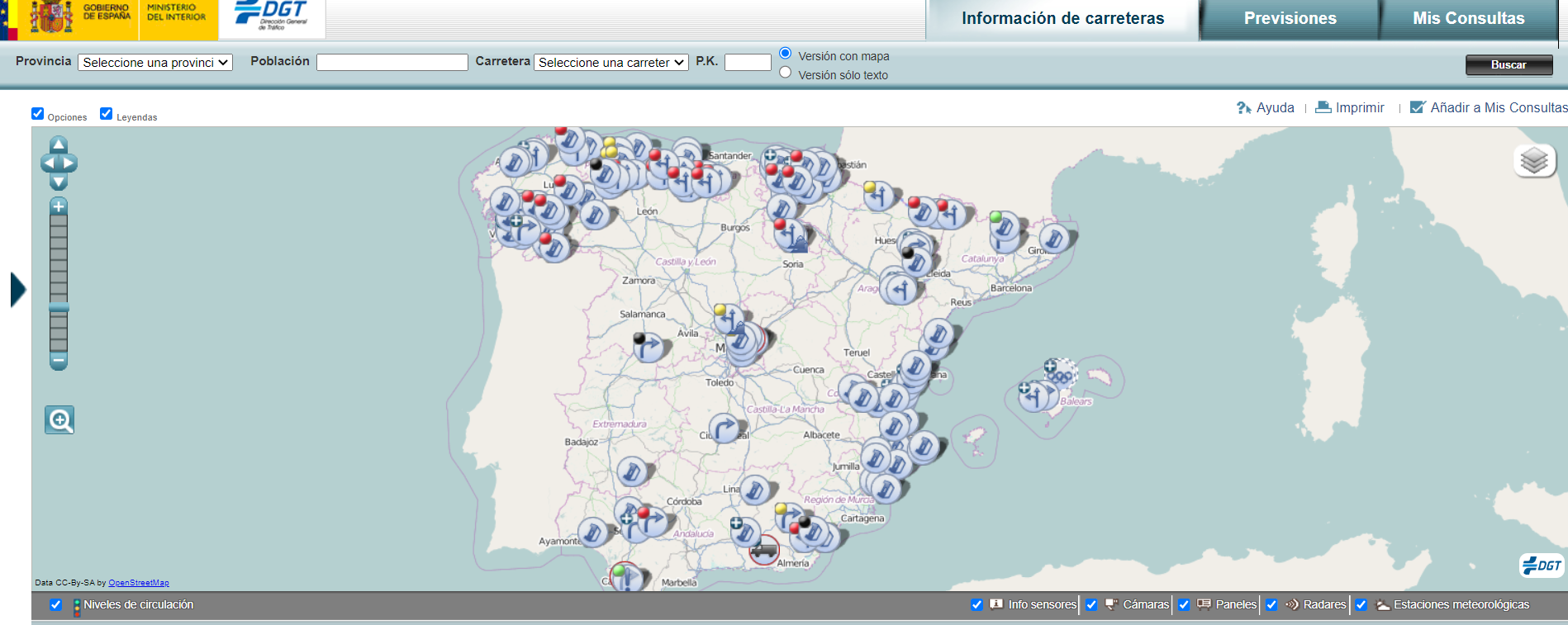 Además, en este mapa aparecen también señaladas las cámaras de la DGT, por lo que su consulta resulta más intuitiva para los conductores.