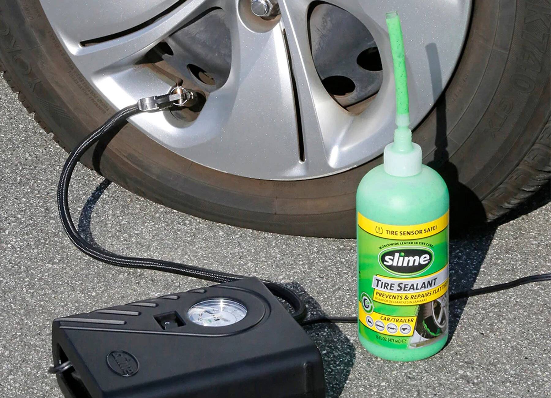 - Manual: el bote de resina selladora se conecta directamente a la válvula del neumático. Posteriormente, mediante un tubo, se vacía el contenido en el interior de la rueda. Por último, se desconecta el tubo de la válvula y se procede a hinchar la rueda con el compresor.