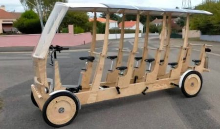 El invento, por su peculiar concepción, entra en la categoría de las bicicletas, pero tiene capacidad para transportar pasajeros al resguardo de la lluvia o el sol. Lo cierto es que, aunque por su sencilla factura recuerda mucho al troncomóvil de los Picapiedra, la idea no deja de ser muy interesante y ofrece múltiples ventajas.