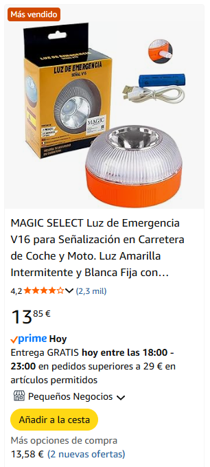 Otros comercios también mantienen a la venta dispositivos de precios similares e igual de inservibles: Media Markt propone el Leotec LEHFV16 por 13,77 euros (más gastos de envío) y la baliza más vendida de Amazon se llama Magic Select y cuesta solo 13,85 euros. Nadie debería comprarlos.
