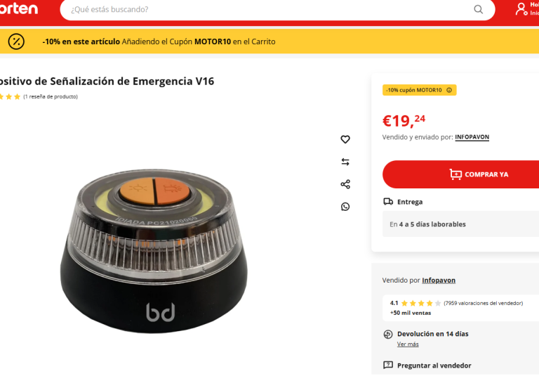 Sucede lo mismo en comercios como PC Componentes o Worten: todos ellos venden balizas conectadas con la DGT, pero si los conductores hacen una búsqueda por precio se toparán con dispositivos sin conexión. “Es muy importante asegurarse de que un modelo está realmente certificado. Consulta el listado de balizas válidas en nuestra web”, apostilla la DGT.
