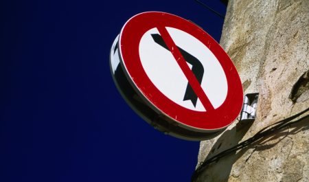 Una señal de tráfico que prohíbe girar a la izquierda. | Getty