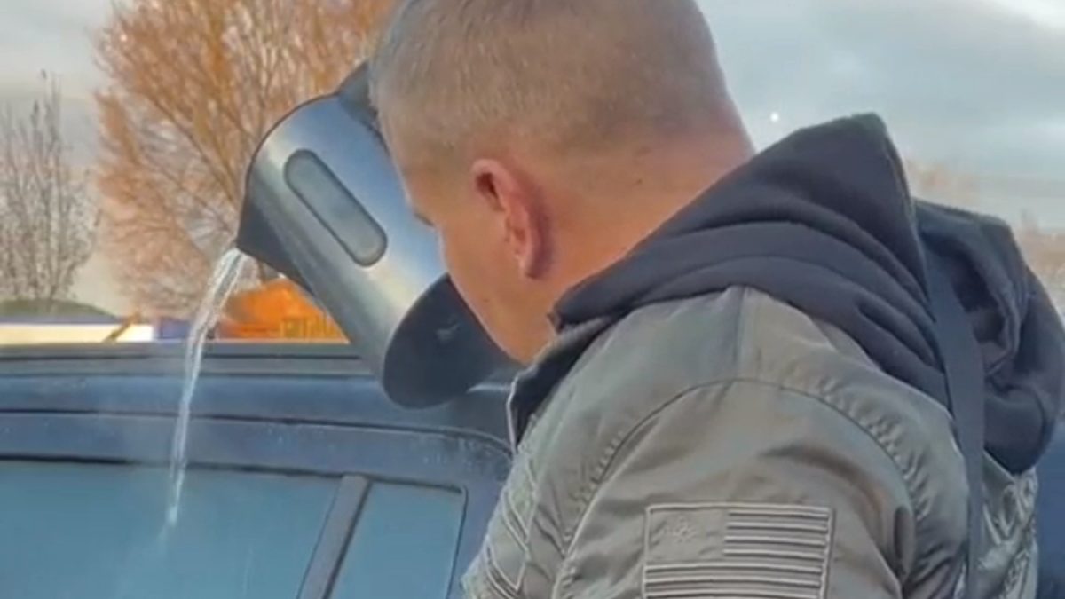 @romaric_king not advisable to pour hot water on frozen car glass #foryoupage #cars #weather #hotwater #carglass #fyp #usa_tiktok #romaricki👑 #makemeviral ♬ Funny Laugh no no no – Sound Effect