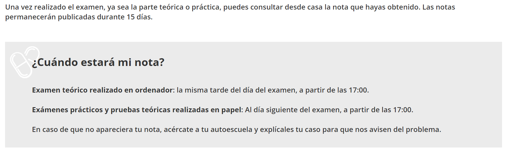 Algunas autoescuelas se encargan de realizar esta consulta para comunicar la nota a sus alumnos, pero todo dependerá del centro.