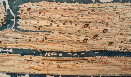 Un fragmento de la Tabula Peutingeriana, un 'mapa' de carreteras de la Antigua Roma.