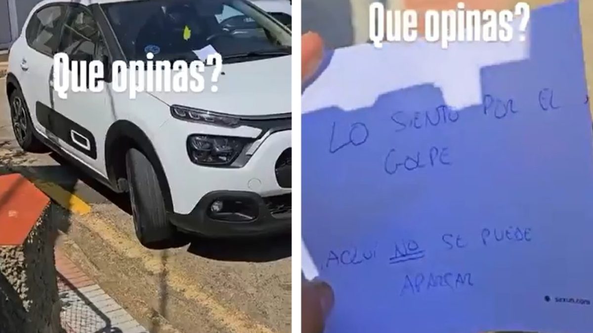 En una calle de una localidad española que no se identifica, un conductor se encontró con una sorpresa poco habitual al regresar a su vehículo. Bajo el limpiaparabrisas, una nota manuscrita le esperaba con un mensaje: “Lo siento por el golpe, aquí no se puede aparcar”, rezaba el papel. La escena fue capturada y compartida en junio pasado en redes sociales por la cuenta de X @LiosdeVecinos.