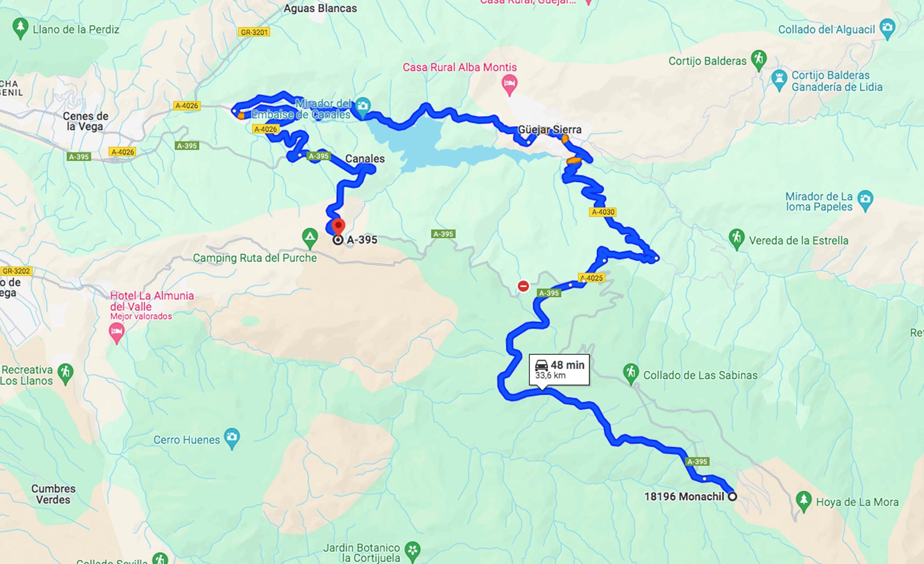 • Descripción: carretera que sube a la estación de esquí de Sierra Nevada que es ideal para los amantes de las curvas y las vistas de alta montaña. El mejor momento para la conducción es en los meses de verano.