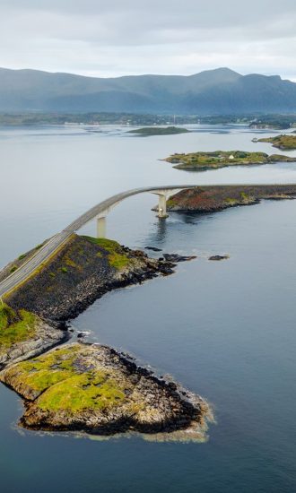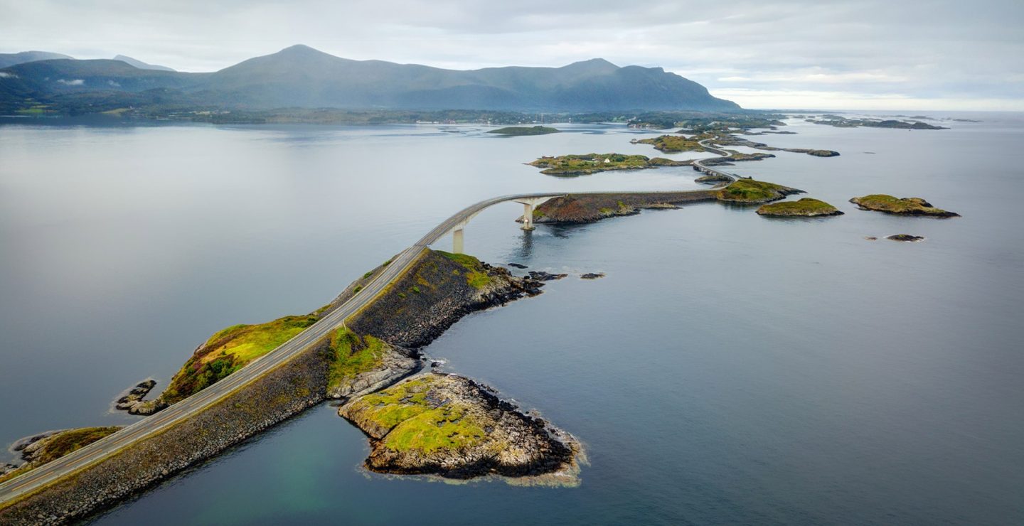 Esta carretera recorre los fiordos abrazada al mar de Noruega (en el Atlántico Norte), atravesando lugares donde la tierra se rompe en cientos islas e islotes. Este tramo de siete kilómetros es un espléndido espectáculo con las aguas en calma; cuando hay tempestad, es peligroso. -