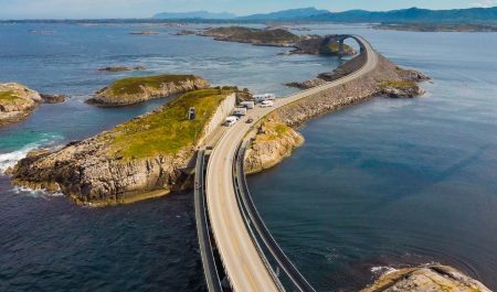 Esta carretera recorre los fiordos abrazada al mar de Noruega (en el Atlántico Norte), atravesando lugares donde la tierra se rompe en cientos islas e islotes. Este tramo de siete kilómetros es un espléndido espectáculo con las aguas en calma; cuando hay tempestad, es peligroso.