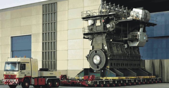Con una cilindrada total de 25.480 litros, dotado de un turbocompresor y sistema de inyección common rail, desarrolla una potencia de 109.000 CV, pero a un régimen de giro extremadamente bajo de entre 92 y 102 revoluciones por minuto. También alcanza una fuerza de empuje gigantesca, cifrada en 7.603.850 Nm (un motor 2.0 turbodiésel de coche suele rendir alrededor de 250 Nm).