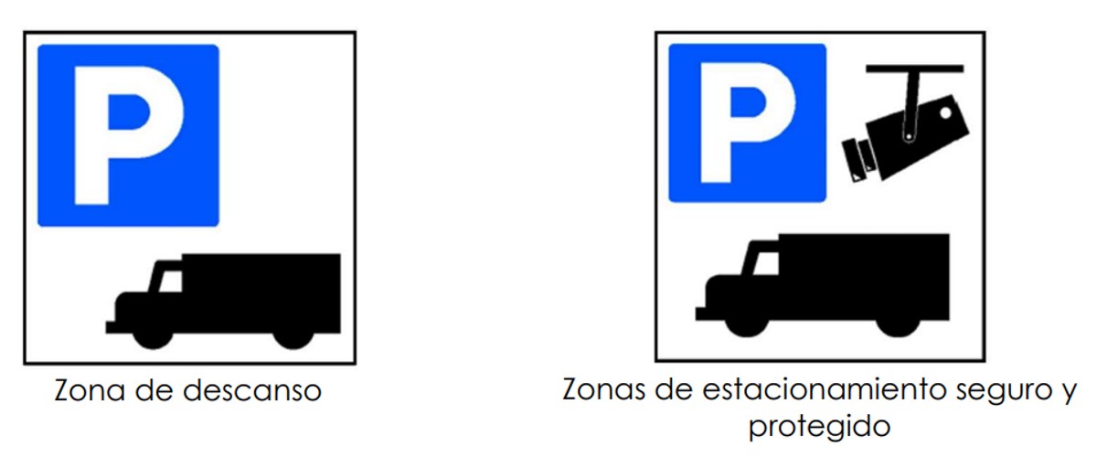 Tras la reforma, el reglamento de circulación recogerá nuevos pictogramas para identificar las zonas de descanso y las zonas de estacionamiento seguras. Las primeras son aquellas que ofrecen “suficientes plazas de aparcamiento, equipos de seguridad y protección e instalaciones adecuadas, incluidas instalaciones sanitarias, que satisfagan las necesidades de los usuarios”, explica el Ministerio.