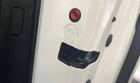 Las puertas de un coche puede ser una valiosa fuente de información para, por ejemplo, saber la presión correcta de los neumáticos: un dato que suele figurar en las puertas delanteras. En las traseras, hay una ranura que esconde el mecanismo de seguridad para bloquearlas.