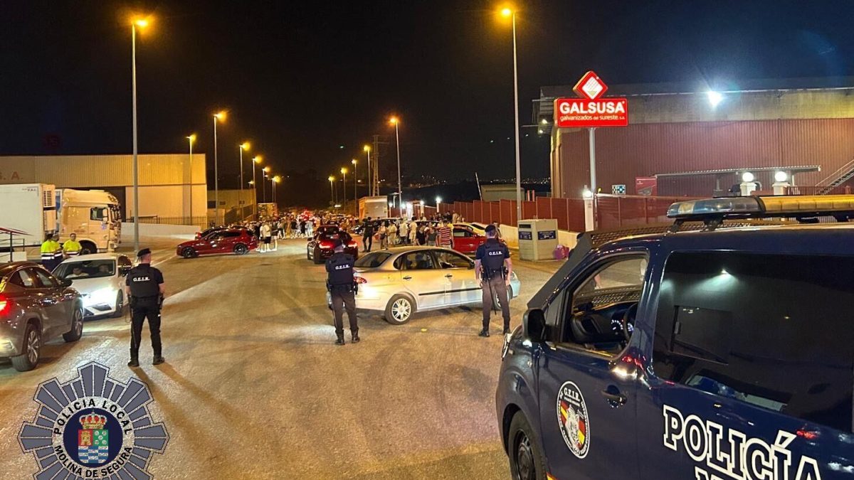 “El Grupo Especial de Intervención Rápida (GEIR) disolvió una concentración ilegal de más de trescientos vehículos tunning en el Polígono Industrial La Polvorista (Molina de Segura). En este tipo de concentraciones se suelen realizar carreras y derrapes en la calzada y utilizan potentes equipos de música a gran volumen”.