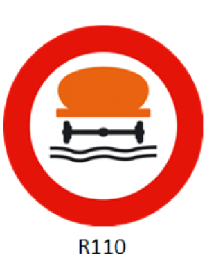 Dentro del grupo de señales de tráfico de prohibición, hay algunas muy específicas con símbolos no tan fácilmente reconocibles. Es el caso de la señal R-110. Este dibujo lo que hace es indicar a ciertos vehículos, con unas características muy específicas, que no pueden circular por la carretera o vía donde están colocadas.