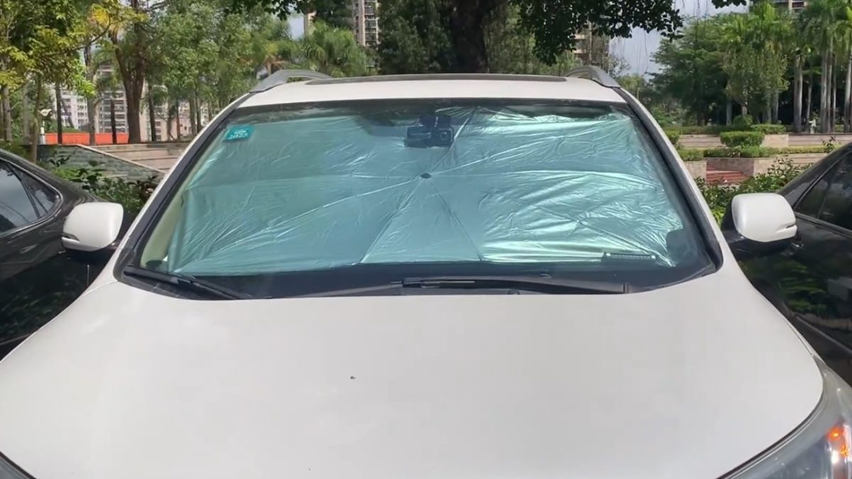 El siguiente es un parasol tipo paraguas que cuesta 18,99 euros y está equipado con cordones suaves y lengüetas para una colocación más flexible, lo que puede proteger mejor el automóvil y evitar que las manos se quemen con ejes de metal calientes.