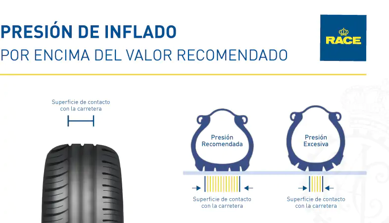 Por otro lado, la conducción con un neumático sobreinflado será más incómoda, ya que este rebotará más contra el asfalto. Igualmente, el riesgo de pinchazo o reventón aumentará, al igual que sucede cuando la presión es baja.