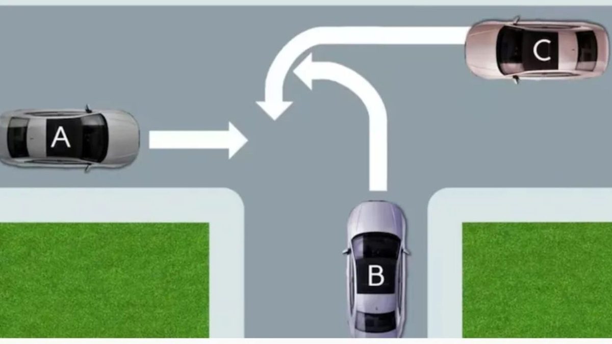 El coche A quiere seguir recto y, siendo que su trayectoria no cambia, además, la vía por la que circula es la principal, ya que la otra se está ‘incorporando’ en esta. Por eso, este vehículo debería gozar de la prioridad en el cruce. Una vez que el A ha superado la intersección porque es el que tiene prioridad, quedan el B y el C.